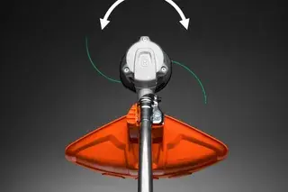 Trimmerhuvudets rotationsriktning kan ändras så att det blir mindre gräsklipp på gångar.